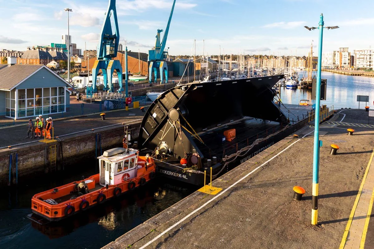 Our tugs and pusher boats in this category bring specific advantages, the compact tugs provide strong bollard pull relative to their size, enabling them to handle small barges, pontoons and construction materials in confined waters and shallow draft conditions. All of our work boats are designed to move modular pontoons and barges for works such as bridge repairs, temporary causeways and harbour construction. Rubber fendered push bows allow secure pushing connections whilst accommodating different barge and pontoon profiles.